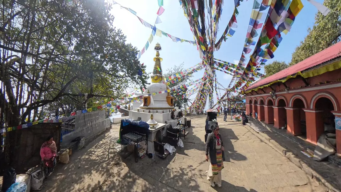 At the summit, you’ll find the serene Jamacho Monastery, believed to be connected to the legendary Guru Rinpoche (Padmasambhava), who meditated here. The monastery, with its golden stupa, prayer flags fluttering in the breeze, and detailed Buddhist carvings, offers a deeply spiritual atmosphere. From this sacred perch, you’re treated to stunning, 360-degree views of the Kathmandu Valley, along with sweeping sights of the Langtang, Ganesh, and Annapurna ranges on clear days.